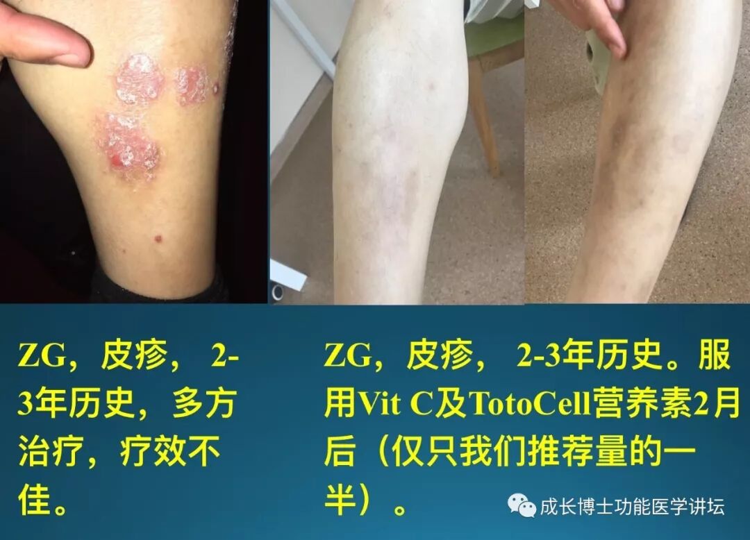4. 不仅内服, 而且外敷。皮肤病与其他内脏疾病不同, 可以从口服, 也可直接从皮肤给药。我们发现经皮肤补充大量营养素/维生素/抗氧化剂/线粒体营养剂对皮肤病效果明显, 这也许是一新的理念。