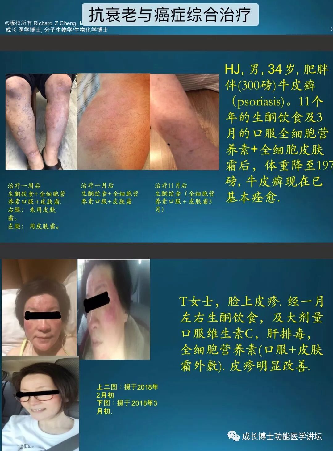 4. 不仅内服, 而且外敷。皮肤病与其他内脏疾病不同, 可以从口服, 也可直接从皮肤给药。我们发现经皮肤补充大量营养素/维生素/抗氧化剂/线粒体营养剂对皮肤病效果明显, 这也许是一新的理念。